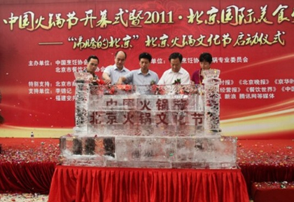 中國烹飪協會副會長劉秀軍,中國烹飪協會副會長、北京餐飲行業協會會長湯慶順,北京市商務委員副巡視員趙利宗等出席了開幕儀式。所謂冰火不容,現場卻以冰雕啟動剪彩儀式,火引冰薪、融化了原本屬于夏日的標志,火鍋突圍、人們的熱情讓會場頓時直達沸點。