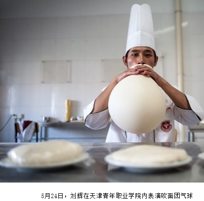 日前,劉輝在上海大世界吉尼斯紀(jì)錄挑戰(zhàn)中,甩出一根1918米的面,打破原“南詔一根面”1704米的世界紀(jì)錄,同時(shí)用面團(tuán)吹出直徑1.5米的“氣球”,獲得“最長(zhǎng)一根面”和“直徑最大的面團(tuán)氣球”兩項(xiàng)上海大世界吉尼斯紀(jì)錄。22歲的天津青年職業(yè)學(xué)院烹飪系教師劉輝,來自山西太原,學(xué)習(xí)面食技藝已經(jīng)5年多,堪稱面食“達(dá)人”。