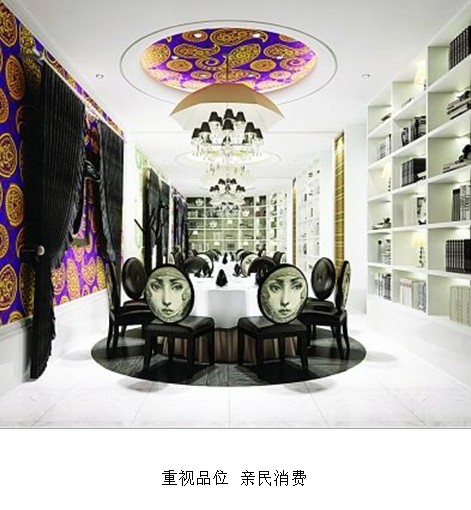 創(chuàng)意川湘菜餐廳呈現(xiàn)時(shí)尚、新潮的設(shè)計(jì)風(fēng)格,店內(nèi)家具均以白色皮革箱造型為主,透露出溫馨的歸屬感和留洋小資品位;整體色彩純凈,弧形墻體、剔透的鳥籠及觸手可及迎面撲來(lái)雅致的書櫥使空間富于流動(dòng)和變化;天棚掛懸的小胖白天使裝飾物進(jìn)一步豐富了視覺空間,卡座以及四周炫目的世界一線奢侈品牌的彩繪圖案,使得店內(nèi)空間充滿了活力的跳躍感,彌漫著時(shí)尚青年向往的留洋生活氣息。