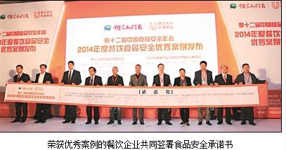 10月18日,第十二屆中國食品安全年會在京召開。由聯合利華飲食策劃與中國食品安全報社共同主辦的2014年度餐飲食品安全優秀案例同期發布。呷哺呷哺、眉州東坡、旺順閣魚頭泡餅、西貝莜面村、廖記棒棒雞等12個餐飲企業所提報的案例脫穎而出,榮獲優秀案例稱號。