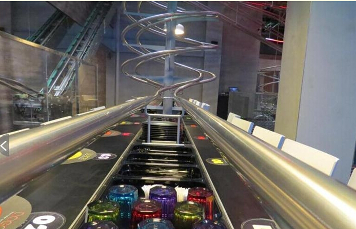 據(jù)報(bào)道,該餐廳名為ROGO's,餐廳內(nèi)每張餐桌都配備有專門為其設(shè)計(jì)的過(guò)山車軌道,共30多條,客人通過(guò)智能終端點(diǎn)餐,裝在密閉容器中的食物通過(guò)這些過(guò)山車軌道被投遞到客人的餐桌上。軌道上的傳輸系統(tǒng)保證了食物運(yùn)輸途中的零噪音,全程自動(dòng)化操作,非常便捷高效。