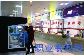 隨后,記者在內(nèi)蒙古財(cái)經(jīng)大學(xué)學(xué)生的引領(lǐng)下,來到了位于食堂二樓的“張亮麻辣燙”窗口,可是在窗口并沒有看到張亮和其兒子的宣傳海報,窗口處貼著“內(nèi)蒙古浩翔餐飲集團(tuán)歡迎每位同學(xué)的光臨”的字樣,窗口的招牌上寫著“麻辣燙”,下面標(biāo)注著張亮名字的全拼“ZHANGLIANG”。