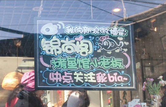烤魚(yú)店開(kāi)在胡同里,曲徑通幽,但人流量畢竟有限,作為廣告系畢業(yè)生的唐棠如何來(lái)推廣宣傳自己呢?唐棠介紹,她開(kāi)店那會(huì)兒,趕上微博熱,于是她立即注冊(cè)了一個(gè)微博號(hào),用戶(hù)名是“錦尚閣烤魚(yú)館小老板”,并附上自己的訂餐電話(huà)。在微博里,她每天勤勤懇懇地更新,內(nèi)容不全是店里的廣告,而是很多開(kāi)店的趣事以及自己的生活片段,比如有一條微博是這樣寫(xiě)的:“員工因家鄉(xiāng)不同,一會(huì)兒有離職要去收麥子的,一會(huì)兒有離職要去敲松子的,一會(huì)兒又有要回家收玉米的……導(dǎo)致我現(xiàn)在對(duì)農(nóng)廣天地的收獲時(shí)段了如指掌”;“來(lái)了一個(gè)帥得飛起來(lái)的男孩兒,女服務(wù)員們都瘋起來(lái)、爭(zhēng)著要服務(wù)這一桌,我批評(píng)了她們:服務(wù)行業(yè)怎么能失態(tài)不淡定!怎么能區(qū)別對(duì)待!你們知不知道,店是我的,你們是我的,好看的男客人也是我的!這桌我來(lái)服務(wù),你們都忙別的去吧……”這些詼諧有趣的情節(jié)以及老板的美照俘獲了眾多同齡人的心,目前她的微博共吸引了5000多名粉絲。唐棠說(shuō):“只要勤更新,微博的宣傳效果的確非常顯著而且很持久,開(kāi)店沒(méi)多久,粉絲們就源源不斷地上門(mén)來(lái)品嘗烤魚(yú),有很多人成了小店的回頭客。到現(xiàn)在,我的新浪微博名字一直寫(xiě)在小黑板上,掛在店外,來(lái)回經(jīng)過(guò)的路人有時(shí)候也忍不住好奇心關(guān)注我的微博,變成潛在客戶(hù)。”