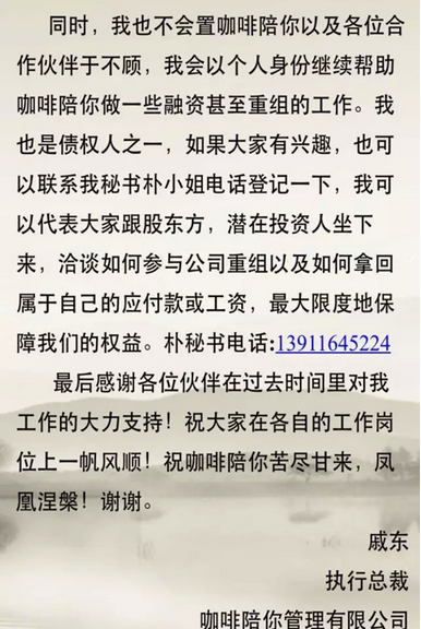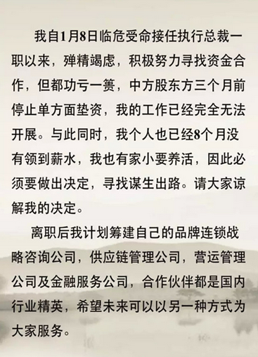 網爆咖啡陪你執(zhí)行總裁辭職信