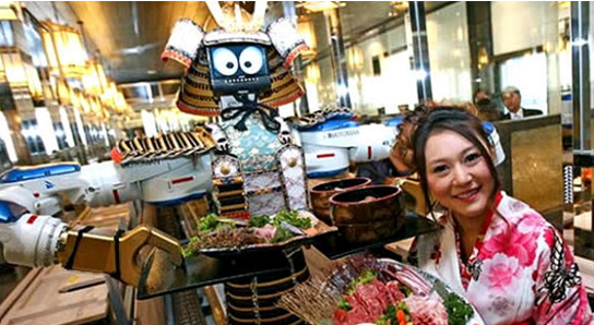 目前來看,比基尼美女、肌肉男相這些營(yíng)銷策略都不如機(jī)器人的附加值大。開個(gè)餐廳,弄幾個(gè)機(jī)器人當(dāng)服務(wù)員玩玩,會(huì)有讓人驚喜的“超現(xiàn)實(shí)感”。關(guān)鍵,這個(gè)“酷”,除能省錢外,還有三個(gè)附加值: