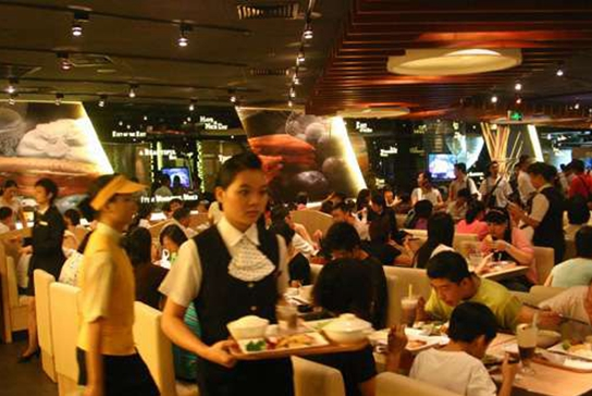 同樣,格調也是休閑餐飲的一大亮點。快餐講究快捷便利,環境要求干凈衛生、明亮熱烈,正餐講究的是一種餐飲文化、特色以及主題,所以其裝修比較個性化,強調就餐環境的獨特性、差異性。而休閑餐飲既要做到比快餐更有個性、更休閑,但又符合快餐的標準化,可以大規模復制又不雷同。