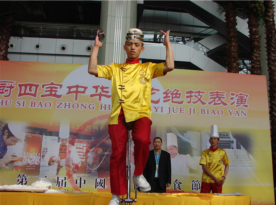 本屆廚藝絕技爭霸賽,設(shè)立刀工、手拉活海參、面塑、拉面、食雕、糖藝、墊綢布切肉絲、提花包及其他類九項(xiàng),以顯示廚師們廚藝深厚精煉的基本功。工藝操作過程有自身特點(diǎn)和超人之處,別人極難達(dá)到或超過。屆時(shí)廚師們的技藝精湛,獨(dú)具訣竅,定能令你耳目一新,稱奇叫絕!