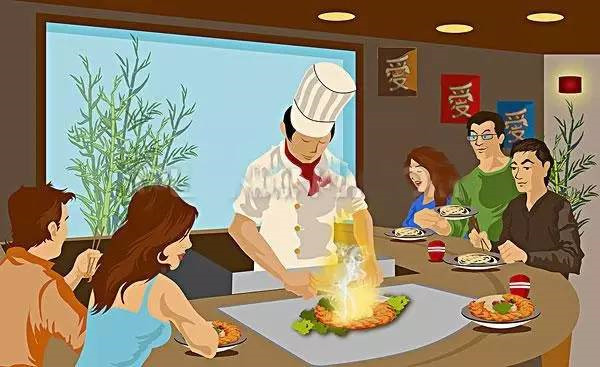 餐廳娛樂(lè)化這很常見(jiàn),如吃飯有人彈奏音樂(lè),堂食有鮑魚(yú)公主服務(wù)之類(lèi)的。但是讓廚師在顧客面前表演烹飪,并且快速提高翻臺(tái)率的方法,你知道嗎?