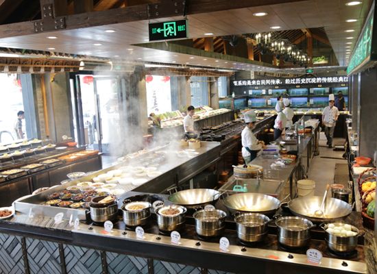 第一家店開了之后,生意很好,驗證了之前他對市場的分析。又經過一番準備,2014年,江南大院的土菜文化博物館的大院模式出現了,江南大院的第二家店,面積逾4000平米。這家店在體量上滿足了江南大院對于土菜展現的要求,門口600多平米的明檔,更讓消費者更直接體驗到土菜的氣氛。