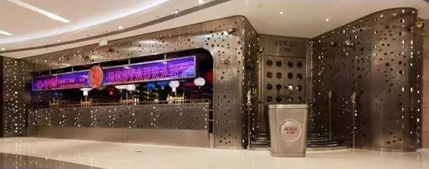 遠處看像盤踞在商場里的金屬洞穴,外圍用不銹鋼緊緊包裹,墻壁上安置了碩大的金銀兩色蜘蛛。在進門處,運用高科技手段,用水幕再現了一個逼真的水簾洞。餐桌上每個蜘蛛都帶上了緊箍咒,這些蜘蛛也成為嘻游記餐廳的標志元素。設計時沒有刻意去塑造西游記的形象,而是用很多插畫來表達現代想象。翻開菜單就像是翻開一本故事書,菜名都非常有西游記特色,例如“俺老孫最!、“女兒國的春夢”、“松茸洋芋紫金缽”等。