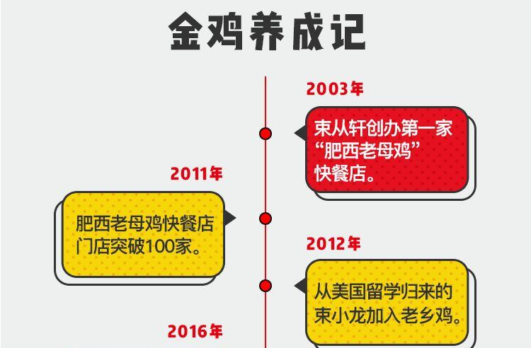 憑借著優質的產品以及精細化的管理,2011年,肥西老母雞快餐店門店突破100家。2012年,從美國留學歸來的束小龍加入了進來,給企業注入了新鮮的血液。